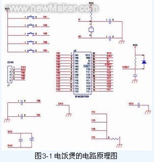 SPMC65P2404A是凌陽公司的8位元單片機,最高工作頻率為8MHz,工作電壓2.5V~5V,有192字節的RAM和4K字節的OTP ROM,有23個可編程IO口,8通道10位A/D轉換器,2通道8位定時/計數器,2通道16位定時/計數器,1個12位PWM輸出口,有低電壓、上電、看門狗、外部信號、錯誤地址復位,并且有一個蜂叫器輸出口……。利用這些資源,能夠實現電飯煲的功能。