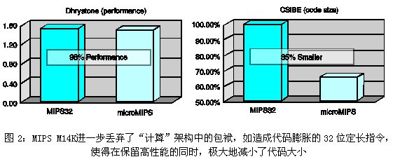 我認(rèn)為MIPS 也在低端產(chǎn)品線上延伸,他們最近發(fā)布的“M14K”內(nèi)核就是明證,在保留當(dāng)前版本性能的基礎(chǔ)上,在代碼密度、中斷響應(yīng)和外設(shè)一致性上取得了非常大的進(jìn)步。