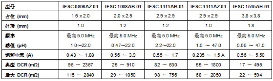 5款新器件采用0806、1008、1111和1515外形尺寸的具有1.0mm的超低外形,最高頻率達5.0MHz,感值高達47µH