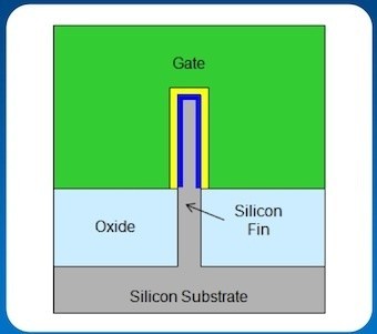 英特爾稱之為3D晶體管,但從技術上講,這是三門晶體管。傳統的二維門由較薄的三維硅鰭所取代,硅鰭由硅基垂直伸出。