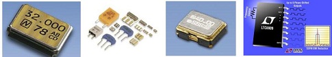 圖中從左到右依次為:晶體諧振器,陶瓷諧振器,晶體振蕩器,硅振蕩器。
