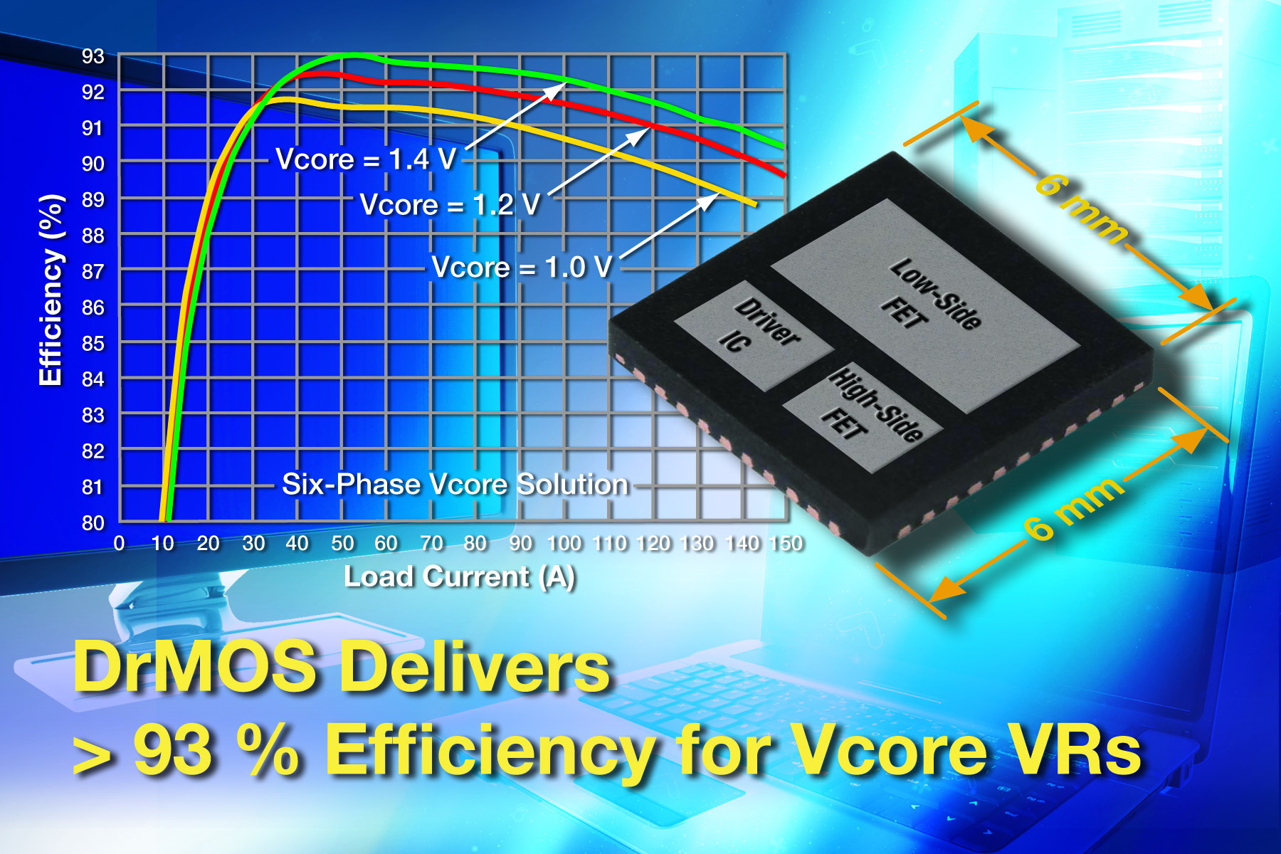 在SiC779CD里集成的驅動IC和功率MOSFET能夠減少功率損耗,減小與高頻分立功率級相關的寄生阻抗。設計者可以為高頻開關進行優化,改善瞬態響應,節約輸出濾波器元件的成本,在多相Vcore應用中實現盡可能高的功率密度。