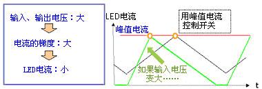要解決這一問題,應(yīng)不用峰值電流來控制LED電流,而須用LED電流的平均值來控制(平均電流控制)。