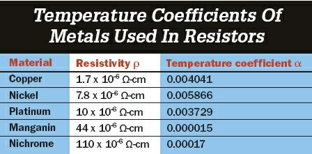 表1:電阻中所使用的金屬決定電阻的溫度系數(shù)。