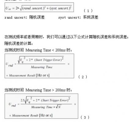 在測試測量中測試精度一直是最為關(guān)心的問題。頻率計作為高精度的頻率和時間測試儀表,測試精度高于普通的頻譜儀和示波器,所以測試精度的計算就更加為人關(guān)注。影響測試精度,或者說產(chǎn)生誤差的因素很多,而其中最主要的因素是儀表內(nèi)部時基穩(wěn)定度、分辨率、觸發(fā)精度及內(nèi)部噪聲等。頻率計可以用來測試如頻率、周期、相位、脈沖等,而其中頻率和周期的測試占有絕大部分比例,本文主要討論頻率和周期的測試精度計算問題。