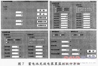 為了驗證課題所設計的蓄電池充放電裝置的功能,設計了檢測與監控系統。軟件的部分界面如圖7所示。