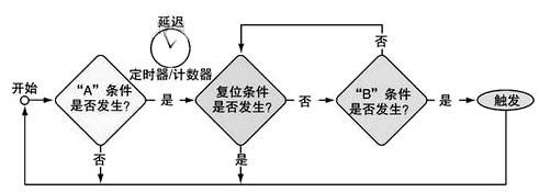 源自電腦編程領域的IF-THEN-ELSE構成了這類觸發結構的概念模型。如圖1所示,這些語句還包括其它判定符(如A和B之間的定時器/計數器)。不管B事件是否發生,在A事件之后隨時都可以發生復位。