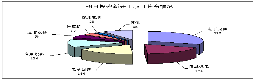 據悉,前三季度,在各地大力發展戰略性新興產業的帶動下,電子信息產業固定資產投資保持高速增長,新開工項目明顯增多,基礎元器件領域投資領先增長,行業結構不斷調整。主要特點如下: