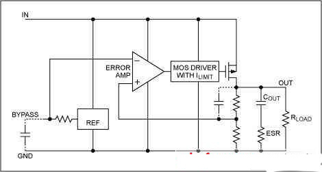 低壓差線性穩(wěn)壓器(LDO)的結(jié)構(gòu)主要包括啟動(dòng)電路、恒流源偏置單元、使能電路、調(diào)整元件、基準(zhǔn)源、誤差放大器、反饋電阻網(wǎng)絡(luò),保護(hù)電路等,基本工作原理是這樣的:系統(tǒng)加電,如果使能腳處于高電平時(shí),電路開始啟動(dòng),恒流源電路給整個(gè)電路提供偏置,基準(zhǔn)源電壓快速建立,輸出隨著輸入不斷上升,當(dāng)輸出即將達(dá)到規(guī)定值時(shí),由反饋網(wǎng)絡(luò)得到的輸出反饋電壓也接近于基準(zhǔn)電壓值,此時(shí)誤差放大器將輸出反饋電壓和基準(zhǔn)電壓之間的誤差小信號(hào)進(jìn)行放大,再經(jīng)調(diào)整管放大到輸出,從而形成負(fù)反饋,保證了輸出電壓穩(wěn)定在規(guī)定值上;同理如果輸入電壓變化或輸出電流變化,這個(gè)閉環(huán)回路將使輸出電壓保持不變,即: