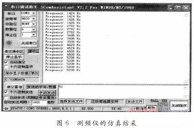 從圖6可以看出,PIC18F452已經測出了設定的幾個輸入頻率的數值,仿真結果表明該方案可行。