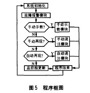 系統(tǒng)上位機(jī)監(jiān)控軟件采用西門子公司W(wǎng)INCCV5.0軟件,運(yùn)用該軟件設(shè)計顯示澆注軌跡及示教參數(shù)輸入等,中文人機(jī)界面,操作方便。