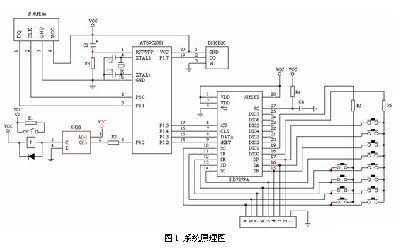 本系統外設鍵盤采用了HD7279A鍵盤顯示芯片,由于要顯示系統設定溫度的上、下限和實時加熱的溫度,因此只使用HD7279A的鍵盤功能,系統的顯示部分采用LT12864I液晶顯示模塊。系統開始工作的時候,通過鍵盤設定加熱溫度,數據傳遞給單片機,再由單片機將數據送顯示模塊顯示;系統工作的過程中,數字溫度計DS18B20測得的實時溫度值也傳遞給單片機,再由單片機轉換數據并送顯示模塊顯示。