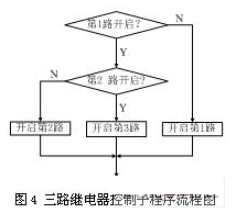 下面是系統中幾個子程序的流程圖:三路繼電器控制子程序流程圖如圖4?! ?/p>