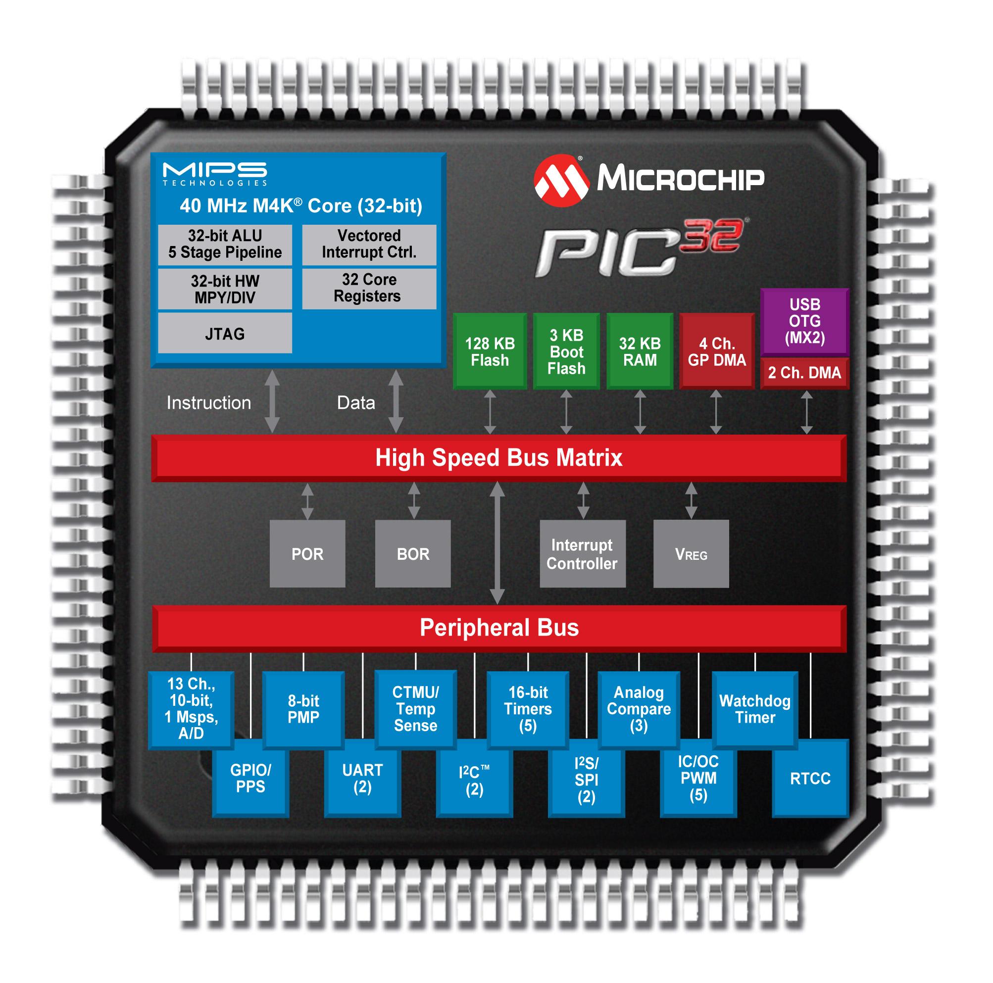 - 配備最大128 KB閃存和32 KB RAM