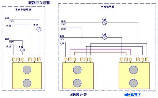 2、雙路開關(guān)接線如下圖