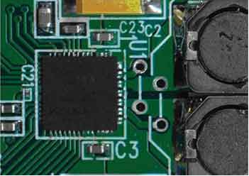 與裸露焊盤相接的敷銅塊應該用多個過孔連到PCB背面的其他敷銅塊上,并應該在滿足系統信號走線的要求下具有盡可能大的面積。加寬所有與器件的連線,這將有益于改善系統的散熱性能。雖然IC的引腳并不是主要的散熱通道,但實際應用中仍然會有少量發熱。圖3所示的PCB中,寬連線將D類放大器的輸出與圖右側的兩個電感相連。在這種情況下,電感的銅芯繞線也可為D類放大器提供額外的散熱通道。雖然對整體熱性能的改善不到10%,但這樣的改善卻會給系統帶來兩種截然不同的結果—系統具備較理想的散熱或出現較嚴重的發熱。
