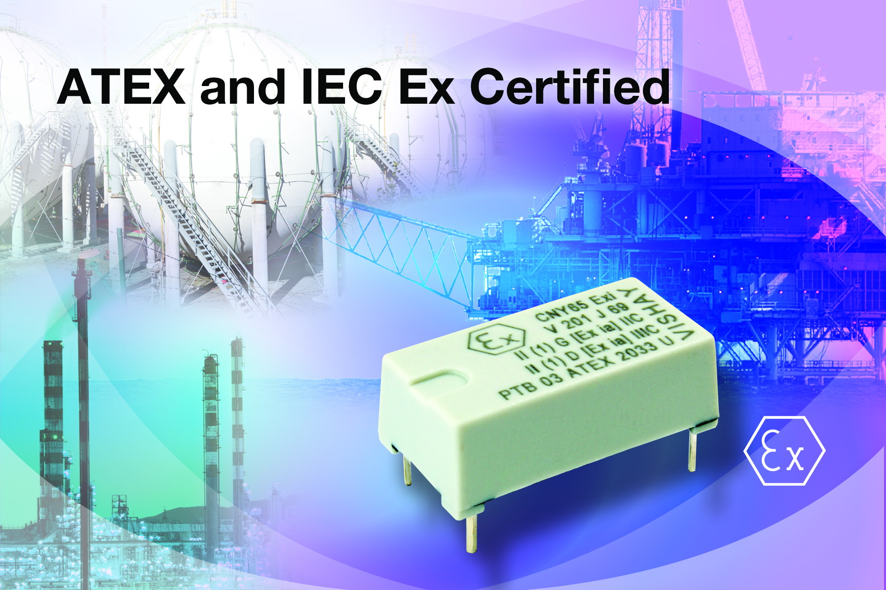 憑借業(yè)內最高水平的隔離電壓和CTI值,CNY65Exi有望被儀表和過程控制系統(tǒng)、天然氣計量和流量測試設備,以及電源和電機切換設備的制造商所廣泛采用。