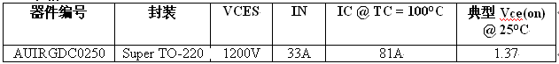 AUIRGDC0250:IR推出優化的車用1200V IGBT