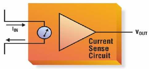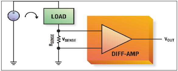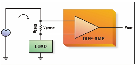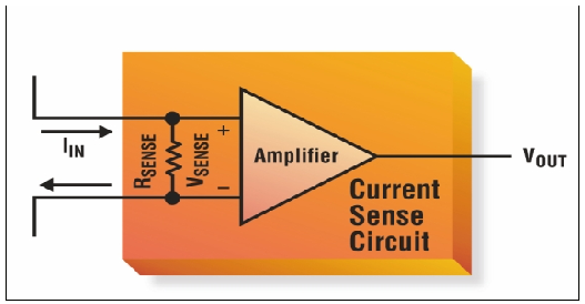 盡管一只電阻就可以將電流轉換成電壓,但電阻自身卻無法提供完整方案。最常用的方案是采用一只檢測電阻,將該電阻直接串聯在電流通道中,再用一個放大器來隔離并調節電阻上的電壓(VSENSE)。