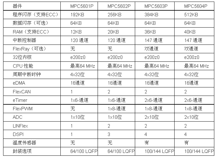 MPC560xP系列比較