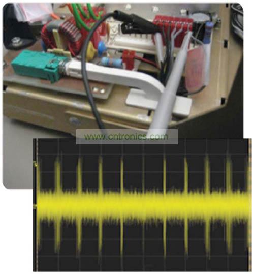 請務必謹慎使用探測附件。通用無源探頭在標準配置中通常提供15厘米長接地引線和掛鉤探針(圖5),這兩種附件可能會探測到電源或其他器件所產生的噪聲。此外,長接地連接往往會產生電感負載,給被測信號增加振鈴。