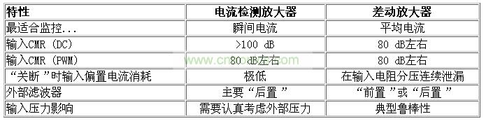 顯而易見,雖然電流檢測放大器和差動放大器工作方式不同,卻履行同樣的功能。差動放大器將高輸入電壓衰減,使信號達到放大器可以接受的電平。電流檢測放大器將差分輸入電壓轉換為電流,然后再轉換至以地為參考的電壓;其輸入放大器因采用高壓制作工藝,能承受高共模電壓,。毫無疑問,兩個架構的不同將導致其性能差異,設計工程師在選擇高端電流檢測解決方案時必須考慮這些性能差異。通常,廠商的數據手冊已提供了大部分信息,可根據精度、速度、功耗及其他參數對器件的類型做出正確判斷。然后,器件架構內在的某些重大差異是無法在數據手冊中立刻發現的,但這些也是非常重要的設計考慮事宜。下面給出了一些工程師在實現最佳解決方案時必須考慮的關鍵點。