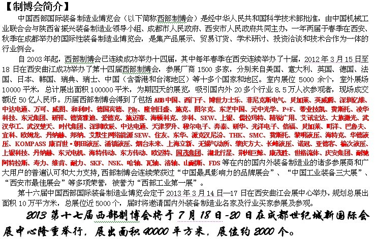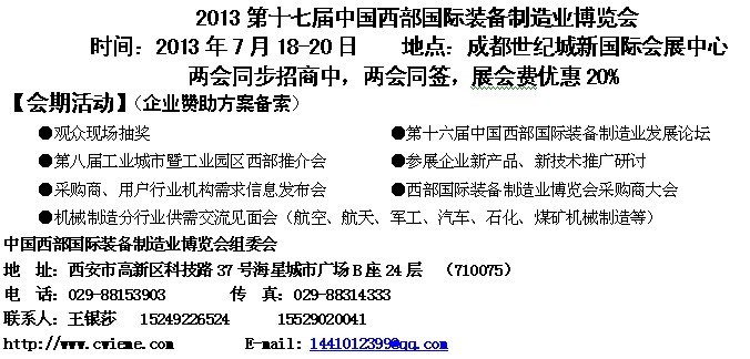 同期舉辦:中國西部國際裝備制造業發展論壇