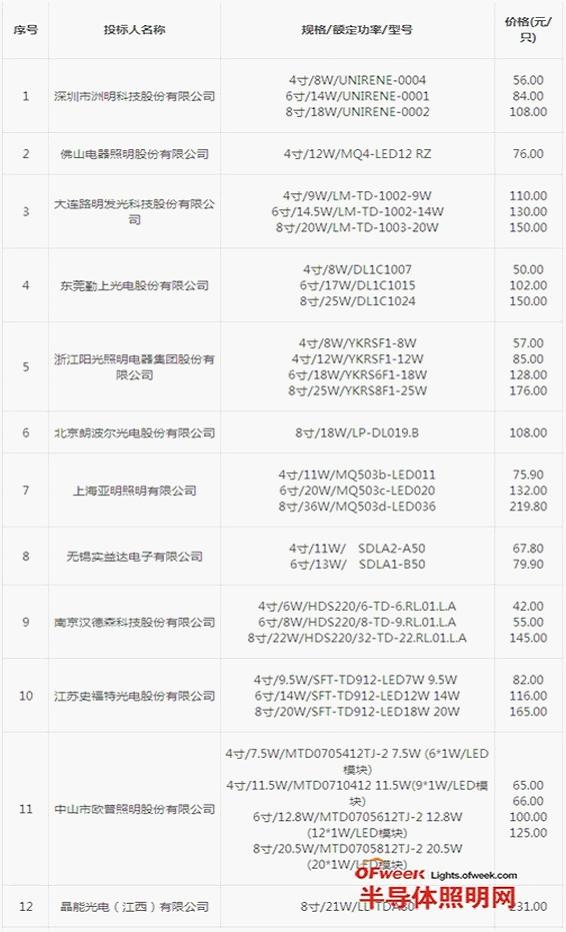 8月24日,中國電子進出口總公司發布2012/2013年度半導體照明產品財政補貼推廣專案(室內照明產品-LED筒燈、反射型自鎮流LED燈)以及(室外照明產品-LED路燈、LED隧道燈)中標入圍結果。