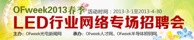 導讀:新年招聘旺季序幕已經拉開,您是否正在茫茫人海大潮中苦尋理想職位?或意欲辭職蠢蠢欲動?新年伊始,OFweek為你推薦LED行業的好工作!3月1號~4月30日,由中國高科技行業綜合門戶網站-OFweek主辦,OFweek人才網、OFweek半導體照明網承辦的“OFweek2013春季LED行業網絡專場招聘會”日前啟動。