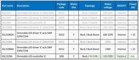 圖1 NXP中小功率市電供電非調光LED驅動IC選型表格
