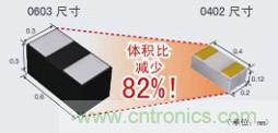 與以往的0603尺寸產品相比,尺寸成功減少了 82%(體積比)