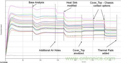為提升整體設計做出調整,如產(chǎn)品的機械、電氣和 EMC 性能間的協(xié)調以及溫度限制、可制造性或成本等其他限制條件,有利于實現(xiàn)連續(xù)改進。對每個學科而言,這些改進可以看作是對基礎設計的完善。在進行熱設計時,則可視為對監(jiān)控點溫度的調整,從而與將用作測量物理原型的傳感器的位置相匹配。