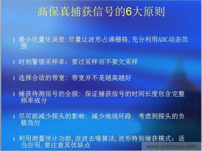 捕獲的第六個(gè)原則,利用測量統(tǒng)計(jì)功能,波形去噪算法。波形特別捕獲模式:適應(yīng)應(yīng)用,要注意其優(yōu)缺點(diǎn)。