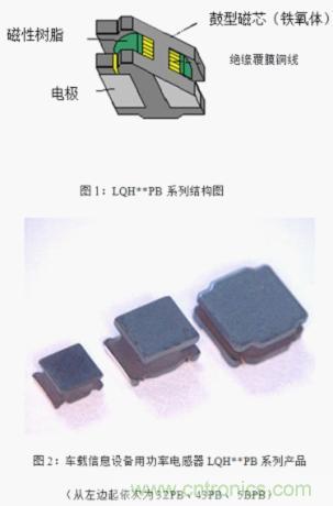 LQH**PB系列產品是在最高可達105℃的環境下使用的繞線型電感器,該系列在2012年5月被產品化至今已經有2年的生產業績。LQH**PB系列的構造是在鼓型磁芯周圍纏繞絕緣覆膜銅線,以減少漏磁及保護絕緣覆膜銅線達到提高產品強度等目的,是一種涂有磁性樹脂類型的產品。其結構圖如圖1,產品照片如圖2。