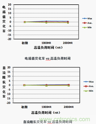 圖8:高溫負荷試驗 (+105℃ 環境/額定電流通電) 的主要電氣特性的變化
