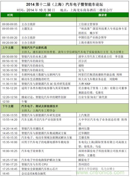 【導讀】我愛方案網 (www.52solution.com)、電子元件技術網 (m.mengyueyun.cn) 攜手中國電子展、清華大學、上海市浦東新區科學技術協會、上海市汽車工程學會順應時勢,將在2014年10月30日共同主辦第十二屆(上海)汽車電子暨智能車論壇。