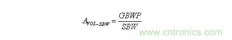 由圖 1 所示可知,像它這樣的運算放大器可以支持1 MHz頻率10 V/V (20 dB)的增益,但我們需要進一步研究。SBW 開環增益曲線的增益為: