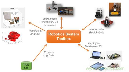 現在,機器人研究人員和工程師們可以在單個統一的設計環境中開發機器人算法,在支持ROS 的機器人和機器人仿真器(如 Gazebo 和 V-REP)上測試和部署機器人算法。它通過減少從 MATLAB程序轉換到 ROS程序所需的手動修改時間,預留了更多的時間來測試和調試算法。