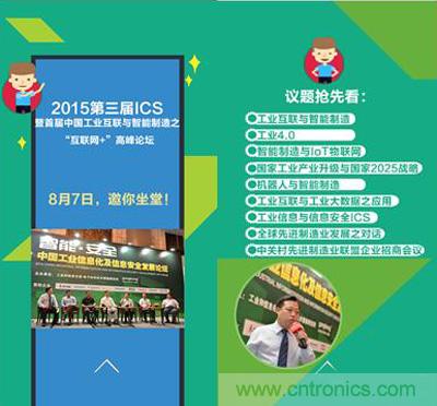 【導(dǎo)讀】gongkong®與工信部電子科學(xué)技術(shù)情報(bào)研究所聯(lián)合主辦,由中國(guó)儀器儀表學(xué)會(huì)與OPC中國(guó)基金會(huì)支持的2015第三屆工業(yè)信息化及信息安全發(fā)展論壇暨首屆中國(guó)工業(yè)互聯(lián)與智能制造之“互聯(lián)網(wǎng)+”高峰論壇,將于2015年8月7日在北京歌華開(kāi)元大酒店召開(kāi)。
