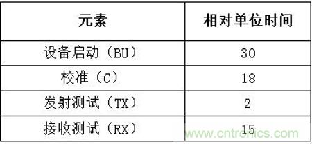 這里基于這一測試配置來討論不同的方法。為了比較這些方法,此處將一個典型的WLAN測試分成以下幾個常見的步驟,并規定了它們的相對時間單位,如表1所示。