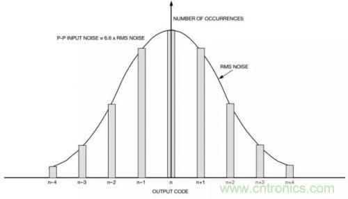 圖1顯示模擬輸入接地時從一個Σ-Δ型ADC獲得的典型直方圖。理想情況下,對于這一固定的直流模擬輸入,輸出碼應為0。但是,由于噪聲影響,恒定模擬輸入存在一個碼字分布。此噪聲包括ADC內部的熱噪聲和模數轉換過程引起的量化噪聲。