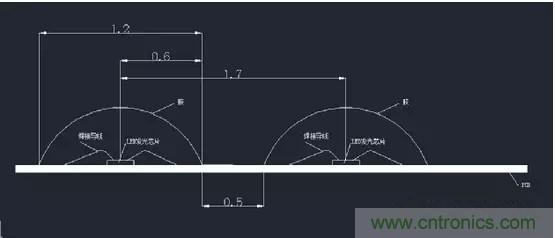 燈珠封裝面積是: S=πr=3.14X1.4=6.15mm