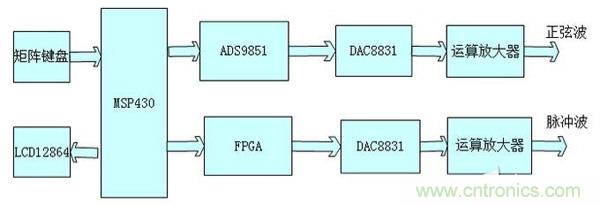 【導讀】本系統(tǒng)以MSP430為控制核心設計并制作一個正弦波和脈沖波信號源。本實驗分為四大模塊,分別是鍵盤掃描模塊,正弦波產生模塊,脈沖波產生模塊和液晶顯示模塊。
