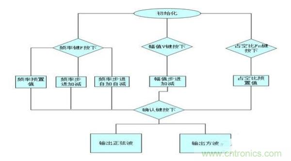 本系統(tǒng)要求在給定±15V電源電壓條件下設計出一個能產生正波和脈沖波的信號源。信號頻率為20Hz~20kHz,頻率能程控步進調整(步長為5Hz),脈沖波的占空比在2%~98%之間能程控步進調整(步長2%),兩路信號均要求幅值在100mv到3V步進可調(步長為100mv),要求性能良好(頻率穩(wěn)度高,非線性失真小等),方案考慮如下:
