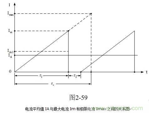 這里順便介紹一下電流平均值IA的求法,以及其與最大電流Im和極限電流Imax的關(guān)系。圖2-59是電流平均值IA與最大電流Im和極限電流Imax之間的關(guān)系圖。
