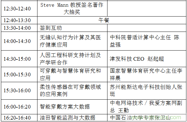 Wearable2017技術與產業論壇將從可穿戴和人機交互技術的起源,發展和應用,探討前沿技術和服務社會的創新結合,Steve Mann教授將分享人本智能,可穿戴與物聯網全新的架構,其他演講嘉賓和主題包括:加拿大工程院士姜晶分享VR和AR在工業的應用,國家千人專家,安進醫療董事長趙偉分享物聯網技術與產業的創新融合,中國可穿戴領域最早的開拓者陳東義老師談可穿戴與AR在工業領域的應用,中科院普適計算研究中心主任陳益強分享殘疾人的遠程交互及可穿戴在醫療健康領域的應用,蘇州能斯達電子科技創始人張珽介紹創新的柔性壓力傳感器在可穿戴領域的應用案例,我愛方案網聯合創始人王勤分享智能穿戴和人工智能方案大數據,中國石油大學專家張衛山分享油田檢測與大數據。關于前沿技術和創新趨勢的領袖對話論壇,嘉賓包括國家體育總局智慧研究中心的李祥晨主任,海爾集團科技專家,中科院深圳先進技術研究院醫工所副所長王磊,中興養老健康CEO蘆東昕和易瞳科技CTO艾韜等。7月28日在深圳的論壇現場將有十多個創新的可穿戴醫療健康和VR/AR的產品展示,各方資源將共同成立可穿戴與VR/AR的創新中心。