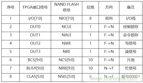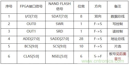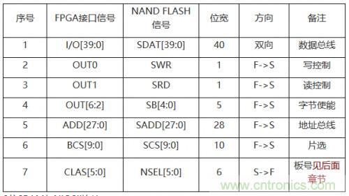 表2,40位NAND FLASH接口連接表