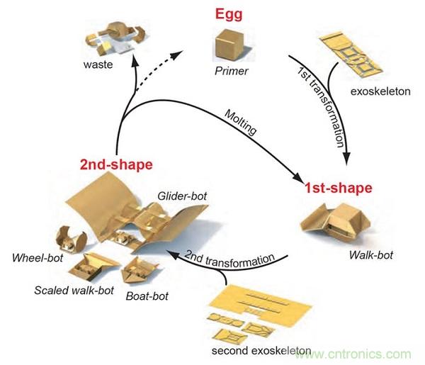 MIT開發(fā)透過磁鐵遠(yuǎn)程控制的Primer機(jī)器人,其以長(zhǎng)方形塑料片制造的外骨骼能自行折疊成不同的形狀,為各種不同的任務(wù)客制機(jī)器人;而當(dāng)Primer完成工作后,則浸入水中溶解外骨骼…