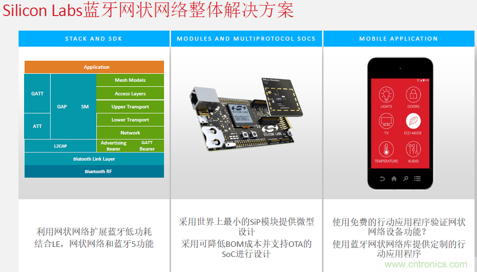 圖:Silicon Labs的無線模組和多協議 SoC采用了世界最小的SiP模塊級微型設計,可以降低BOM成本并支持OTA設計。設計開發者還可以直接采用Silicon Labs的APP軟件進行功能調試。