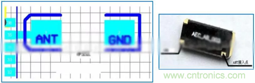 陶瓷天線是另外一種適合于藍牙裝置使用的小型化天線。陶瓷天線的種類分為塊狀陶瓷天線和多層陶瓷天線。由于陶瓷本身介電常數(shù)較PCB電路板高,所以使用陶瓷天線能有效縮小天線尺寸,在介電損耗方面,陶瓷介質(zhì)也比PCB電路板的介電損失小,所以非常適合低耗電率的的藍牙模塊中使用。在 PCB設(shè)計時,天線周圍要凈空就可以了,特別注意不能敷銅。如下圖: